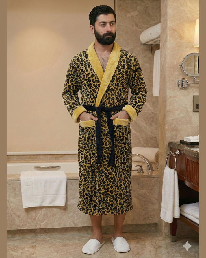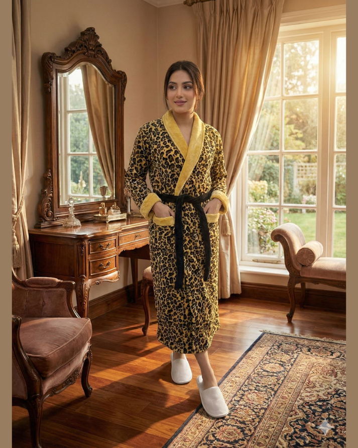 Leopard Print Fleece Bathrobe – Plush & Cozy Comfort