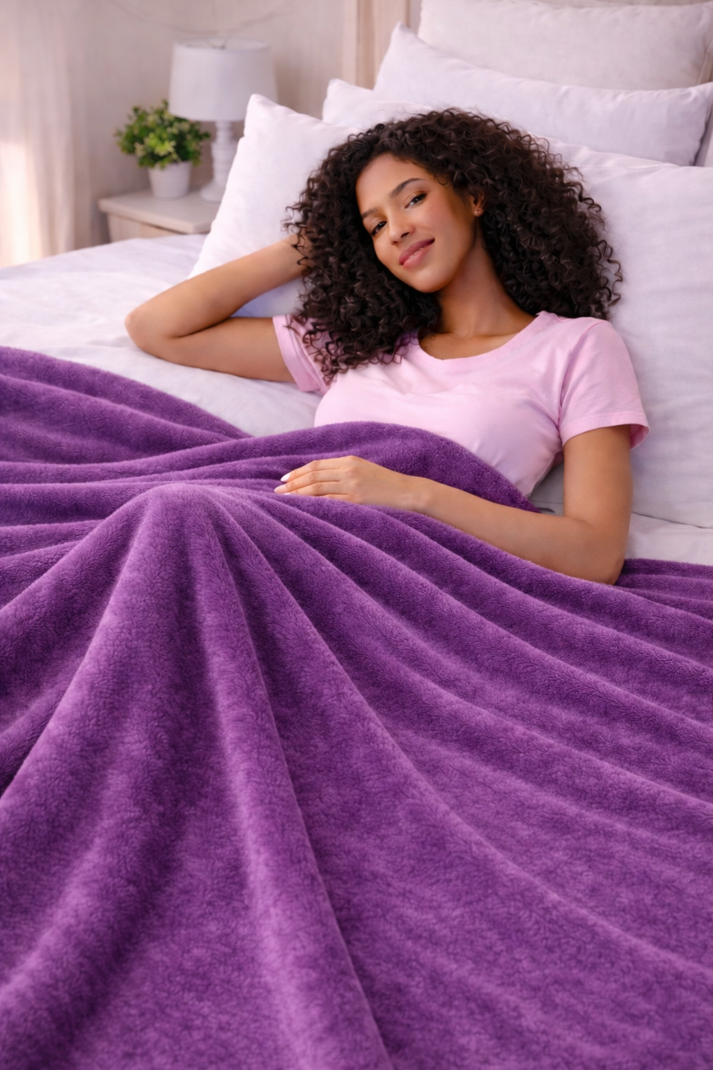 Elegant Embossed Blanket | Luxury Coral AC Fleece (LIGHT PURPLE)