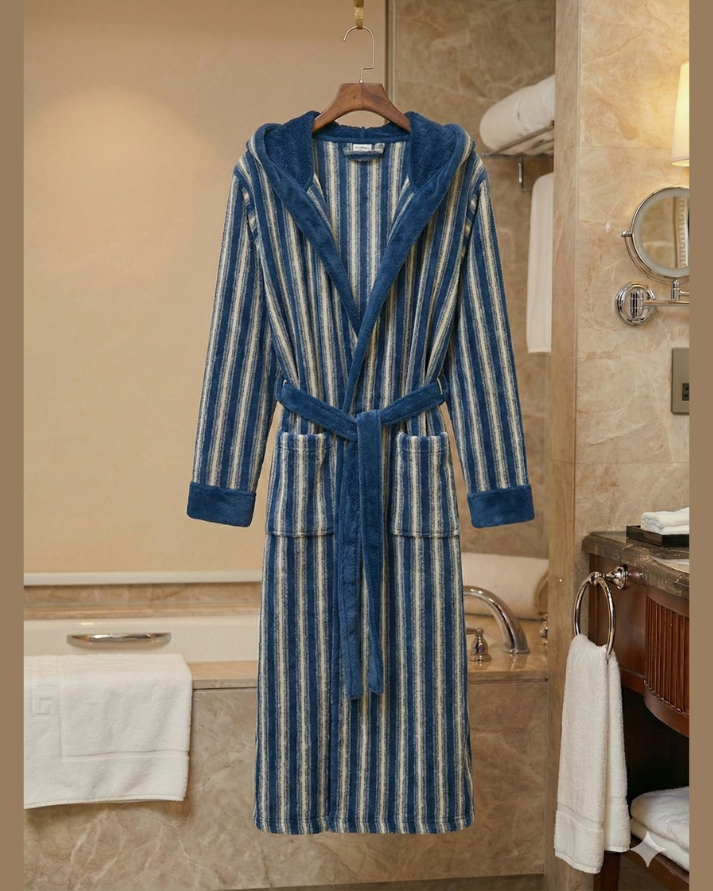 Premium Striped Fleece Bathrobe with Belt – Ultra Soft