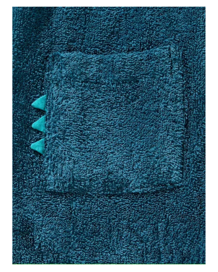 Turn bath time into a fun and cozy adventure with our Dinosaur Hooded Kids Bathrobe in bold Dark Blue, specially designed for children aged 4 to 10 years. Made from soft, absorbent fabric, this bathrobe keeps your child warm and comfortable, while the playful dinosaur hood with spikes adds a touch of excitement that every young dinosaur fan will adore.